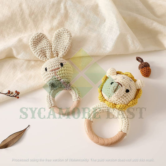 SUNNYSKIES EAST Baby Crochet Bunny Rattle & Lion Combo