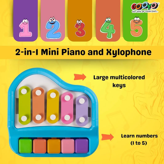 Gleemo 1503 Non-Battery 2-in-1 Mini Piano & Xylophone Toy with Colorful Keys and Mallets for Kids